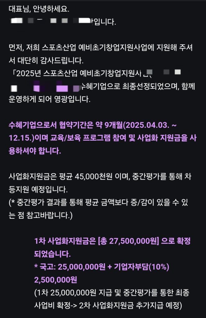 “정지창스터디를 하면서 국가 지원금을 지원을 했고, 저는 올해초에 ‘2025년 재기사업화 지원’ 과제에 합격했어요.!!! 선정된것만도 너무 감사한데, 얼마 전에는 “사업비 증액”이라는 기적(?)까지 경험했답니다”